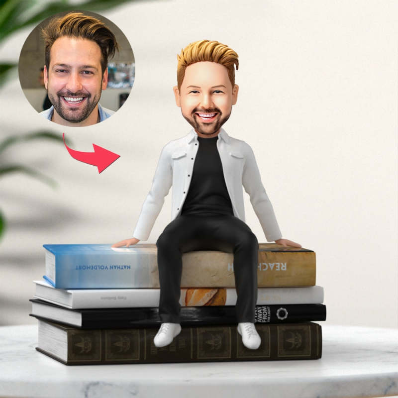 Casual Man in White Coat Custom Bobbleheads Gifts For Young Friends(Book Not Included)