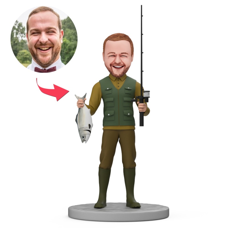 Father's Day Dad Fishing in Casual Clothes Bobblehead with Engraved Text
