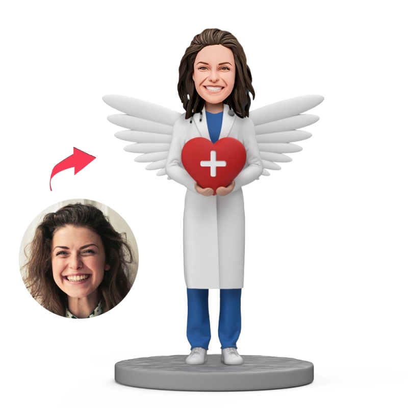 Female Doctor Hold Rescue Sign Love Heart Custom Bobblehead with Engraved Text