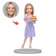 Happy Birthday Woman Hold Cake Custom Bobblehead with Engraved Text