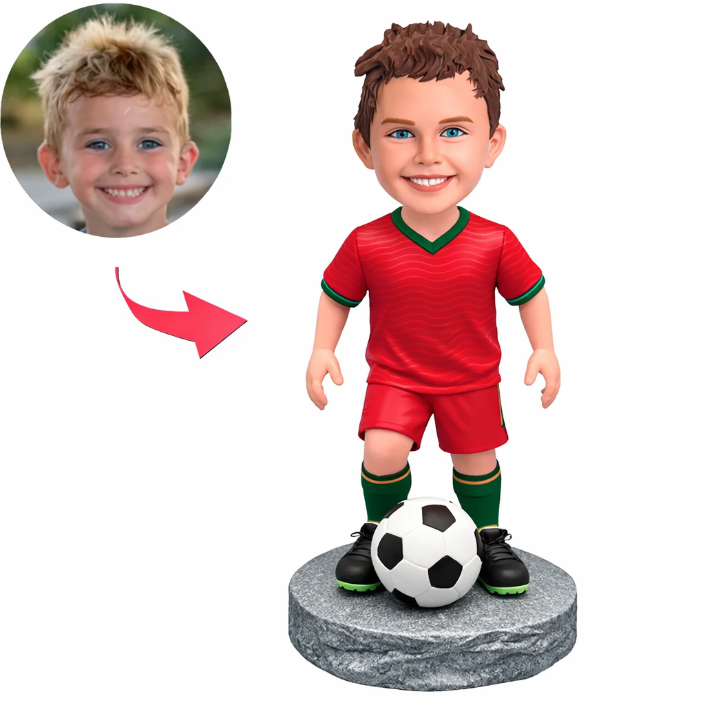 Personalized Portugal Style Soccer Bobblehead from Photo, Custom Youth Bobblehead Engraved with Text