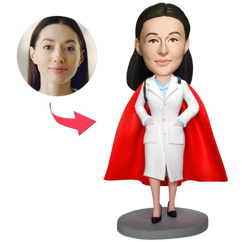 Super Female Doctor With White Coat Custom Bobblehead With Engraved Text