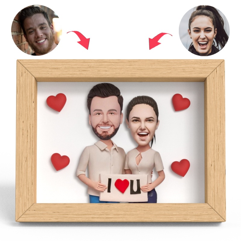 The Couple with The I LOVE U Sign Clay Figure Frame Gifts
