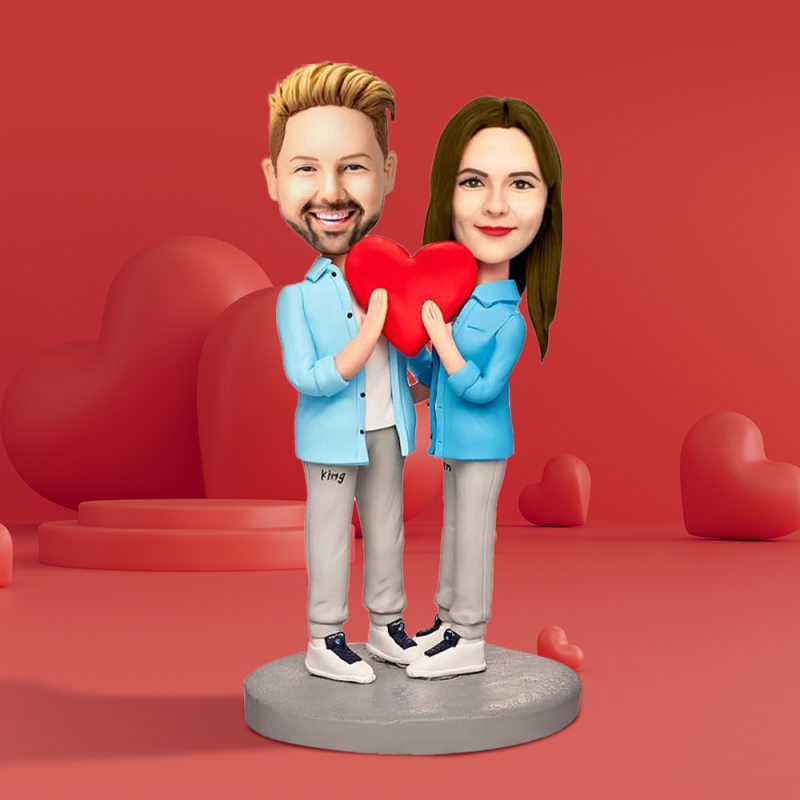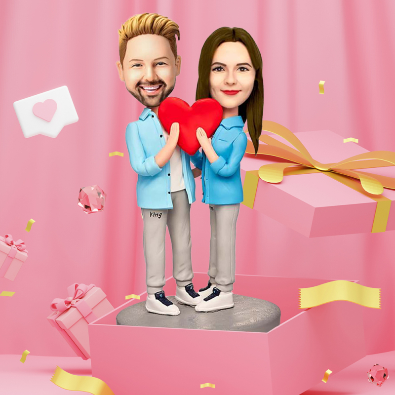 Valentine's Day/Anniversary Gift Couple Custom Bobblehead With Engraved Text
