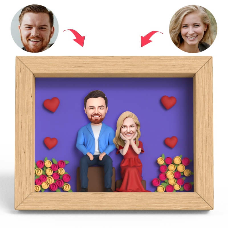 Valentines Gift Lovers Sitting Position Clay Figure Frame Gifts