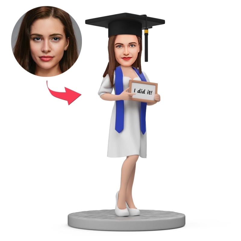 White Dress Female Graduate I did it Custom Bobblehead with Engraved Text