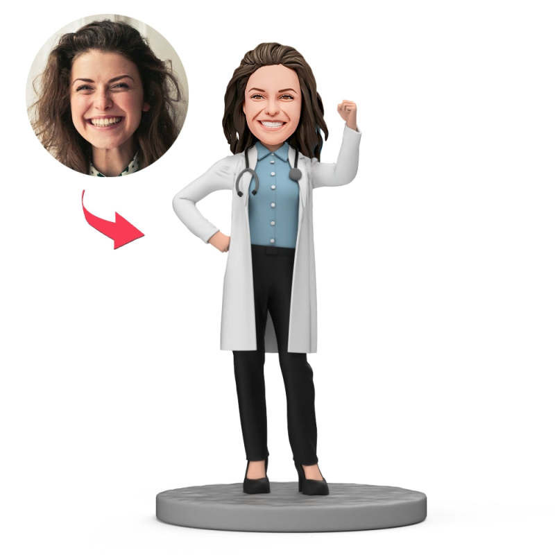 Female Doctor with Stethoscope Custom Bobblehead with Engraved Text