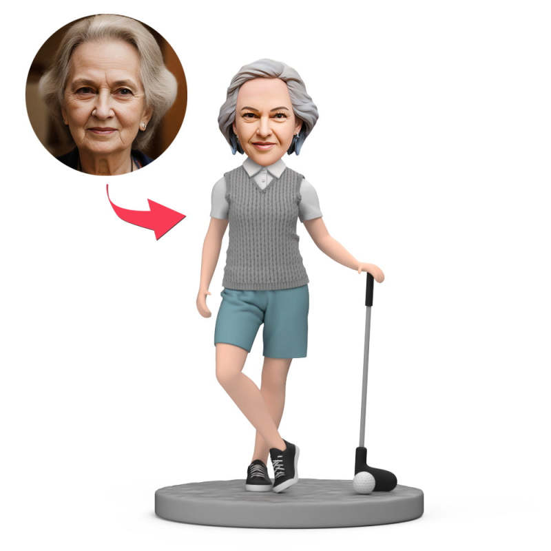 Gift For Grandma Custom Bobblehead Play Golf with Engraved Text